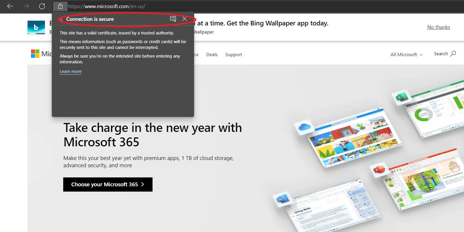 - Verify the security certificates of websites by clicking the small padlock icon in the left corner of your browser’s address bar. Below, you can see step-by-step instructions on how to do this for any website you visit.