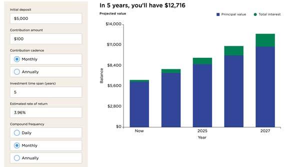 HIGH-YIELD SAVINGS (3.96%) - 5 years of saving: $12,716