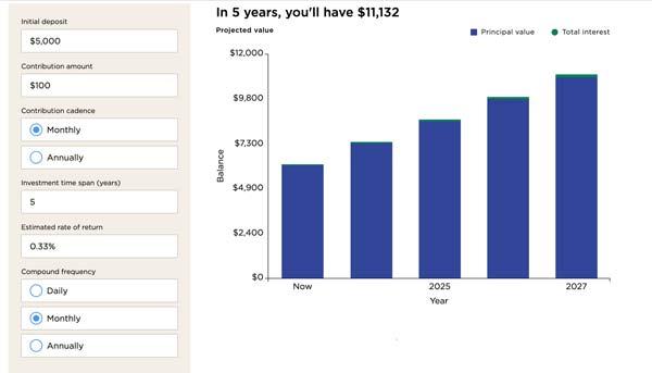 REGULAR SAVINGS (.33%) - 5 years of saving: $11,132
