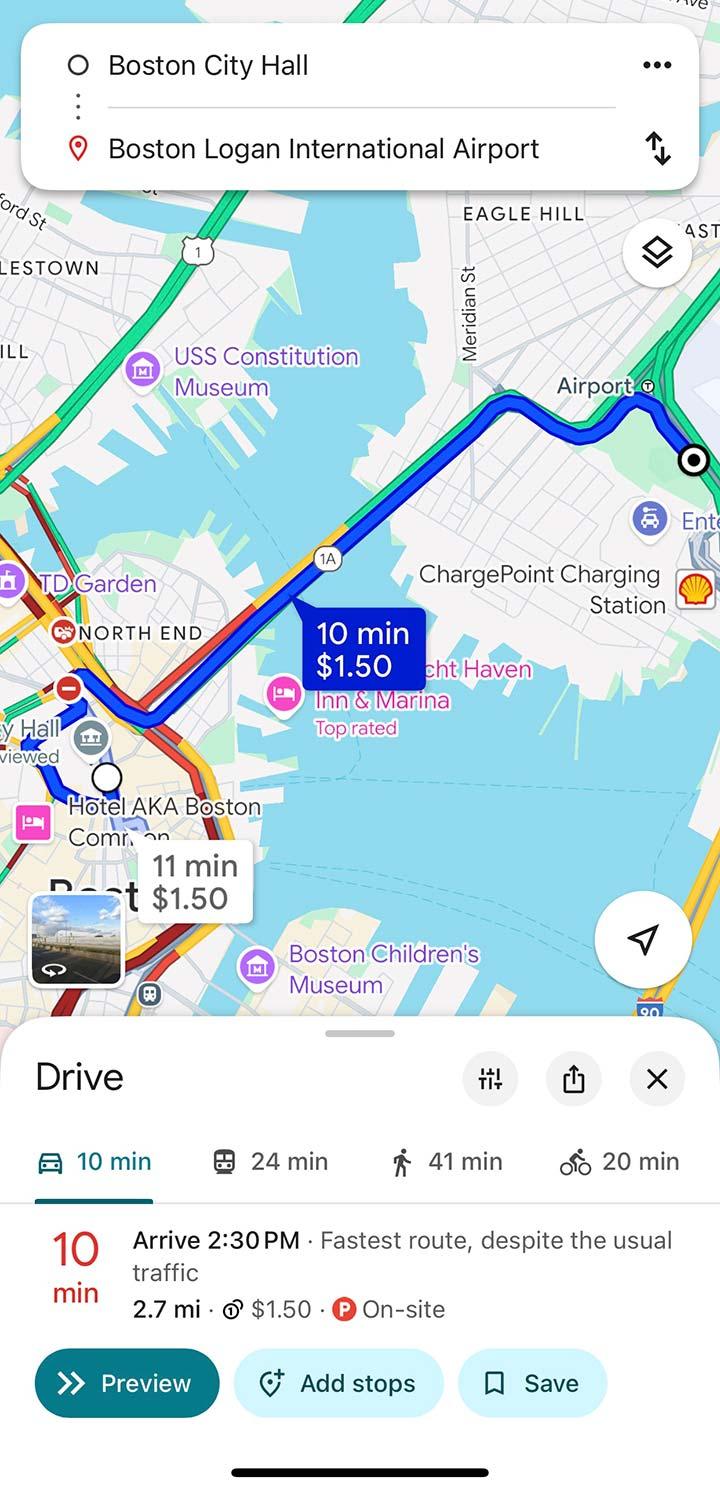 - Routes are conveniently displayed with estimated travel times, distances, and any major traffic issues.