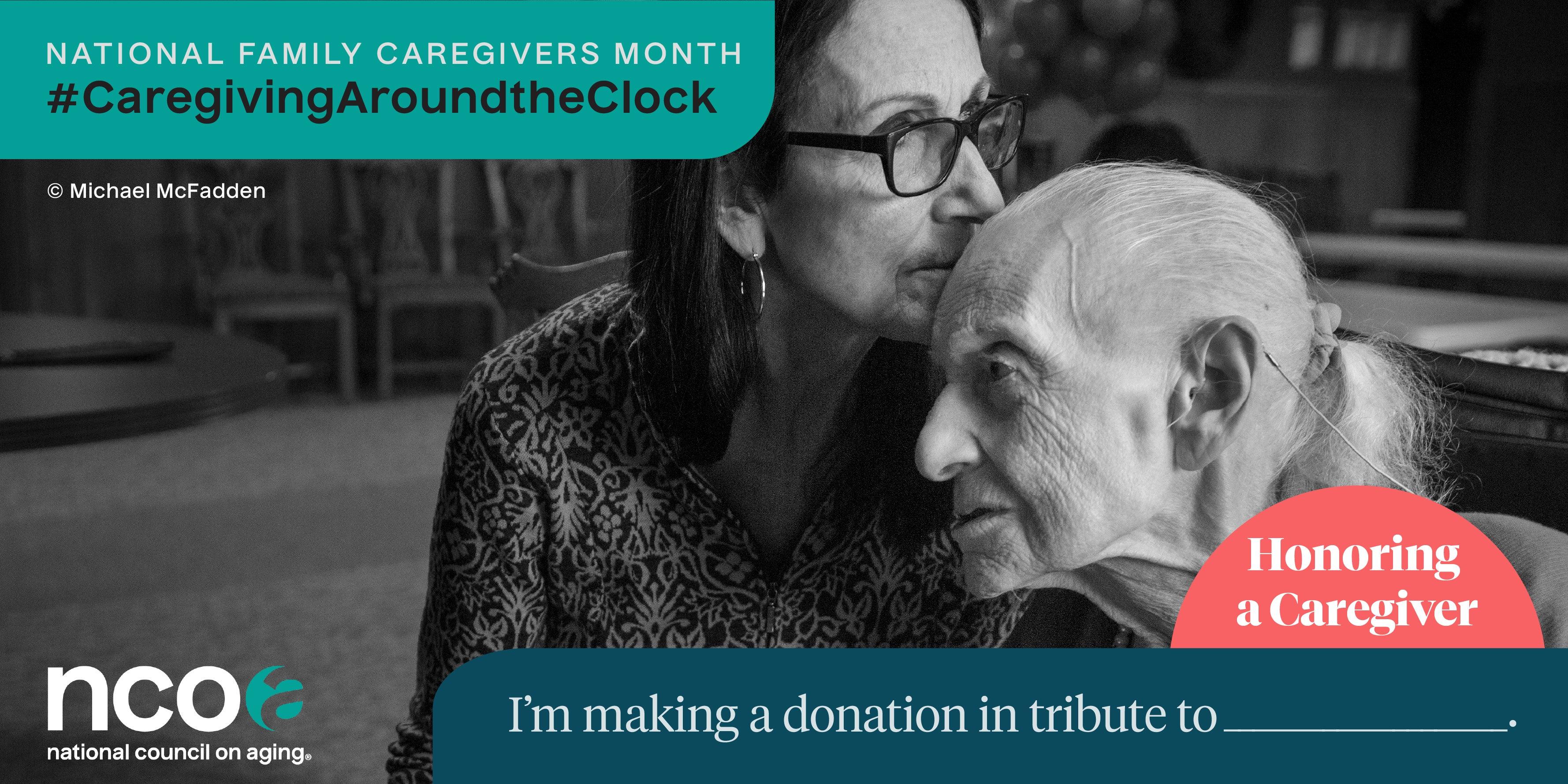 My name is INSERT YOUR NAME, and today I made a donation to NCOA in tribute to INSERT NAME OF PERSON YOU'RE HONORING. November is #NationalFamilyCaregiversMonth, and I'm celebrating by showing my pride for INSERT NAME OF PERSON YOU'RE HONORING. More than 53 million family caregivers provide unpaid care. Being a #FamilyCaregiver is perhaps one of the most rewarding #Unpaid jobs someone can have. To all the ✨caregivers✨ out there, we see you, you are loved, and this month we're celebrating you! #NFCMonth #CaregivingAroundTheClock #CaregivingHappens | |||