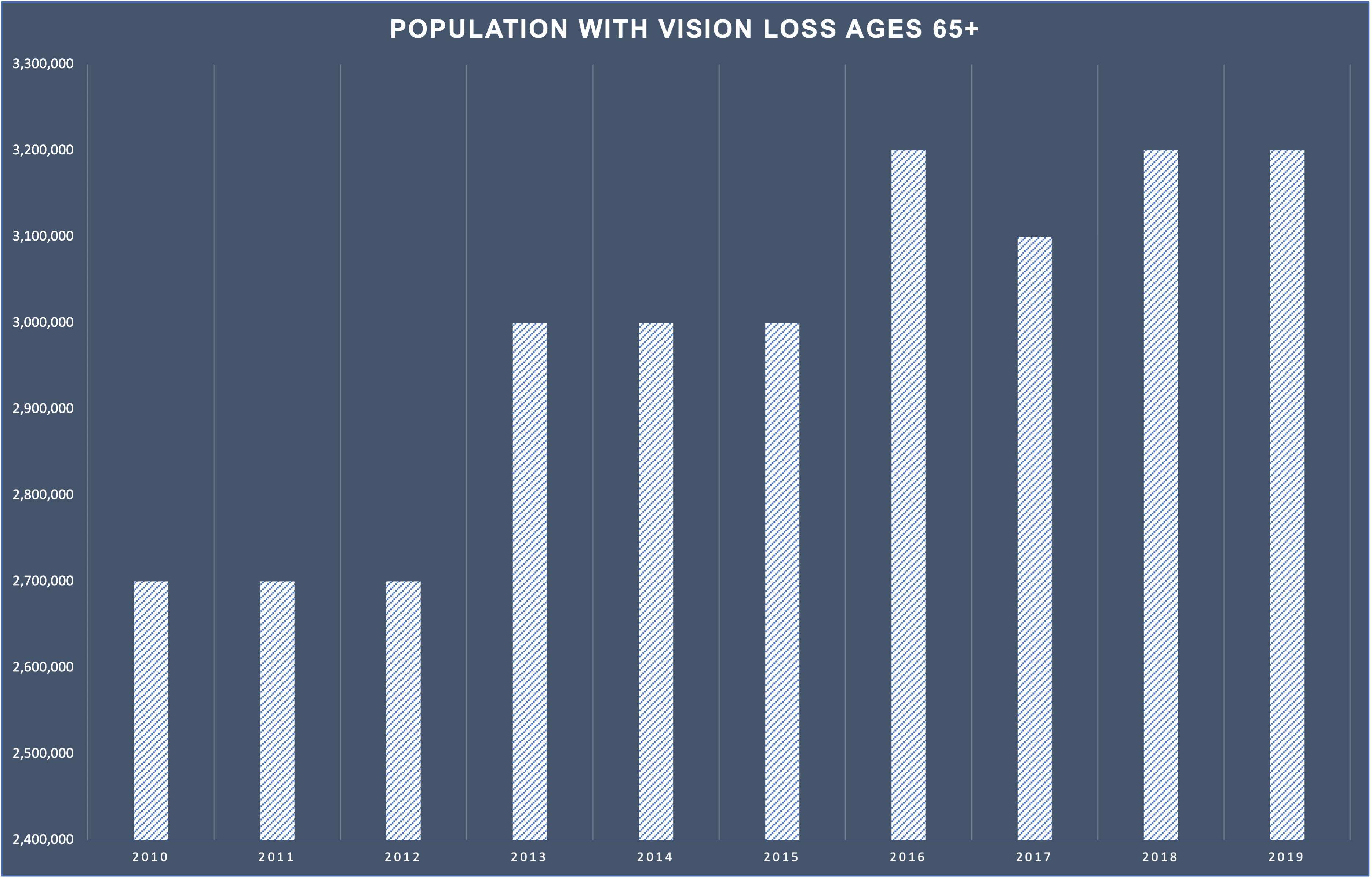 Vision loss is a growing challenge for older Americans. According to the American Foundation for the Blind, 3.2 million people—age 65 and older—experienced visual impairment in 2019.